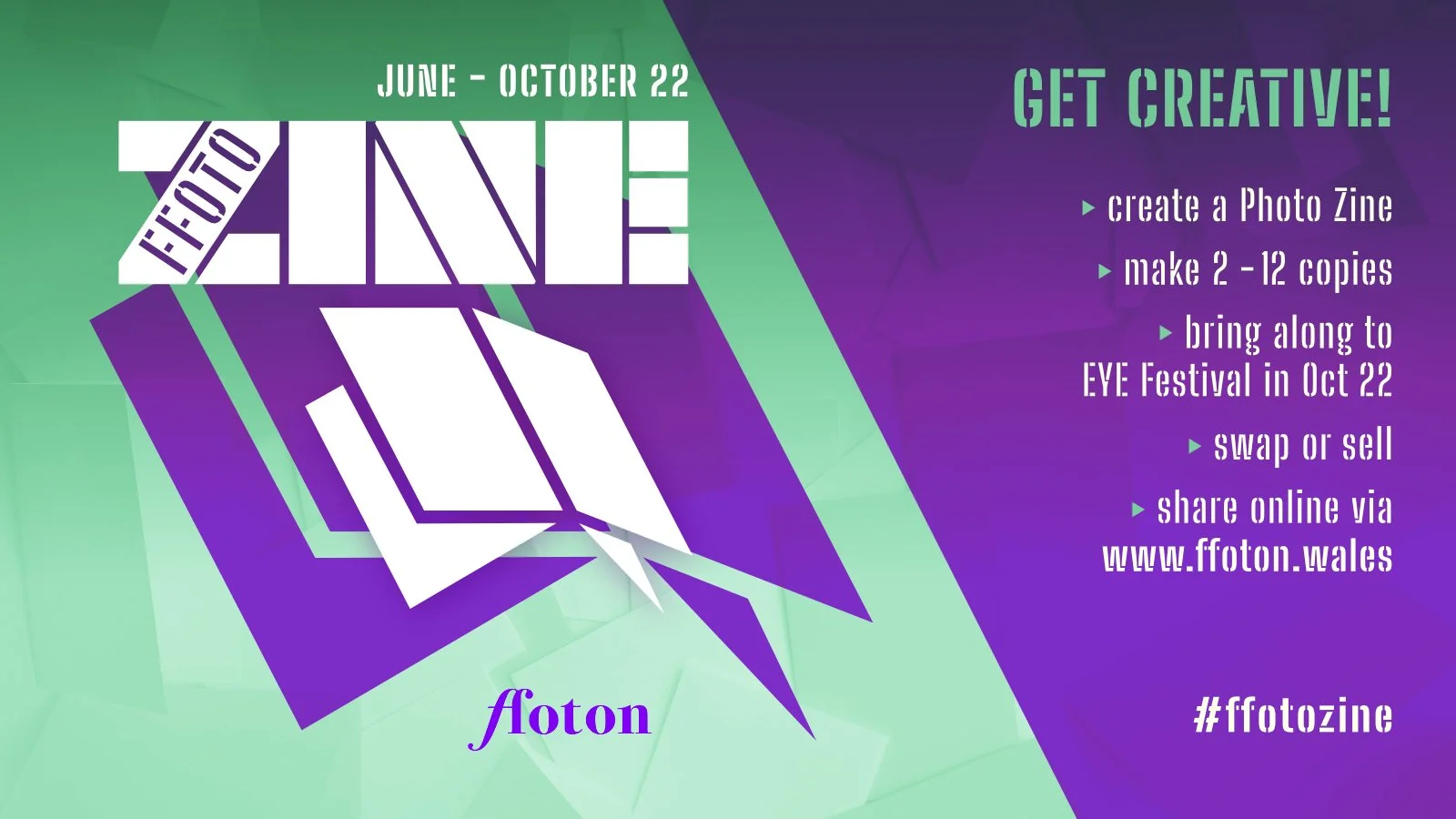Starting June through October 2022 we’ll be using #ffotozine to revive the photo zine vibe in Wales - to encourage photographers of any experience to pull images off their computer hard drives and create a new zine of their own. Create 2 or 12 zines (more if you like) to share with others before, during and after the EYE International Photography Festival.