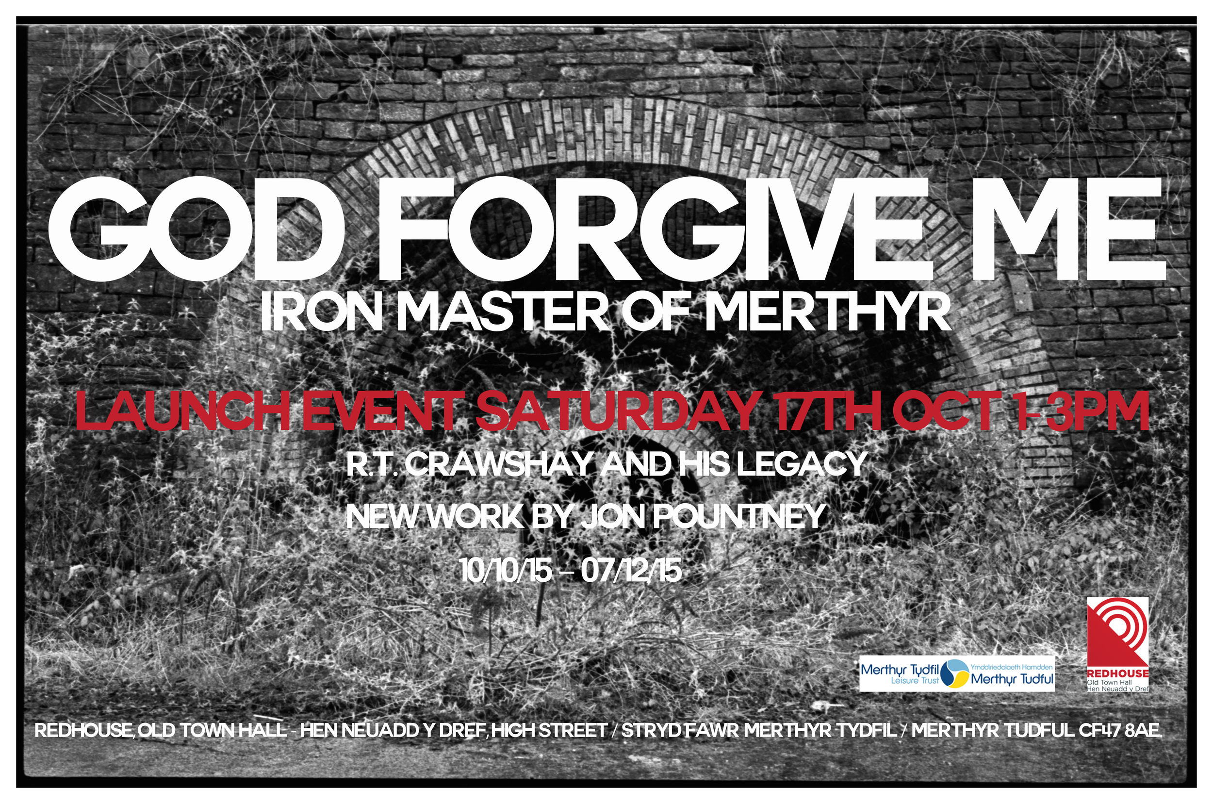Showing in Redhouse Cymru (the old Merthyr town hall) is 'God Forgive Me' a new exhibition by Pontypridd-based Jon Pountney. Based on Robert Thompson Crawshay, the Iron Master of Merthyr, the suite of work is inspired by the enigmatic 'God Forgive Me' inscription on his tomb and the events in his life that led him to decide on that epitaph.