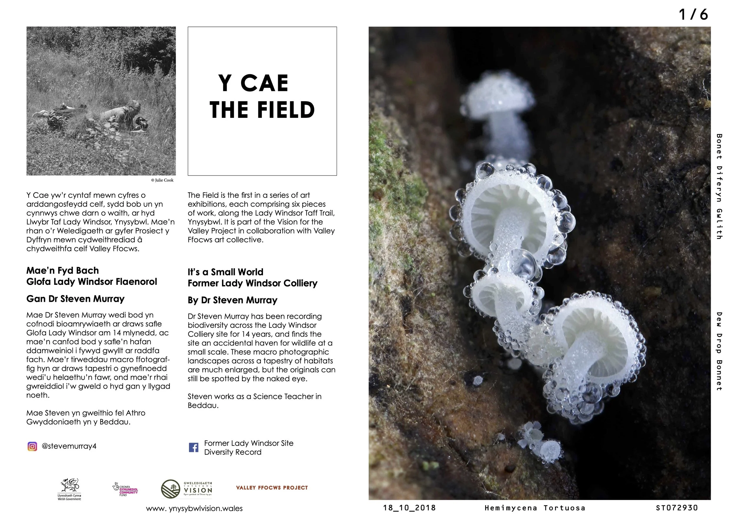 Y CAE / THE FIELD is an ongoing series of exhibitions curated by Valley Ffocws art collective in collaboration with the Ynysybwl Regeneration Partnership (YRP) on the subject of the former Lady Windsor Colliery site, a few miles north of Pontypridd. Each exhibitor will take over the six presentation boards located along the the Windsor Trail for two months, host a shared community event and create a publication available from the YRP office.